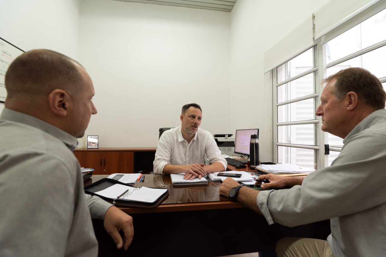 El intendente Luis Guy y el secretario Matias Cattaneo se reunieron con Pablo Omarini, vicepresidente del organismo provincial IAPV, para abordar estrategias que permitan seguir avanzando en alternativas para ampliar la construccion y mejora de viviendas en la localidad.
