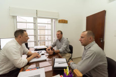El intendente Luis Guy y el secretario Matias Cattaneo se reunieron con Pablo Omarini, vicepresidente del organismo provincial IAPV, para abordar estrategias que permitan seguir avanzando en alternativas para ampliar la construccion y mejora de viviendas en la localidad.